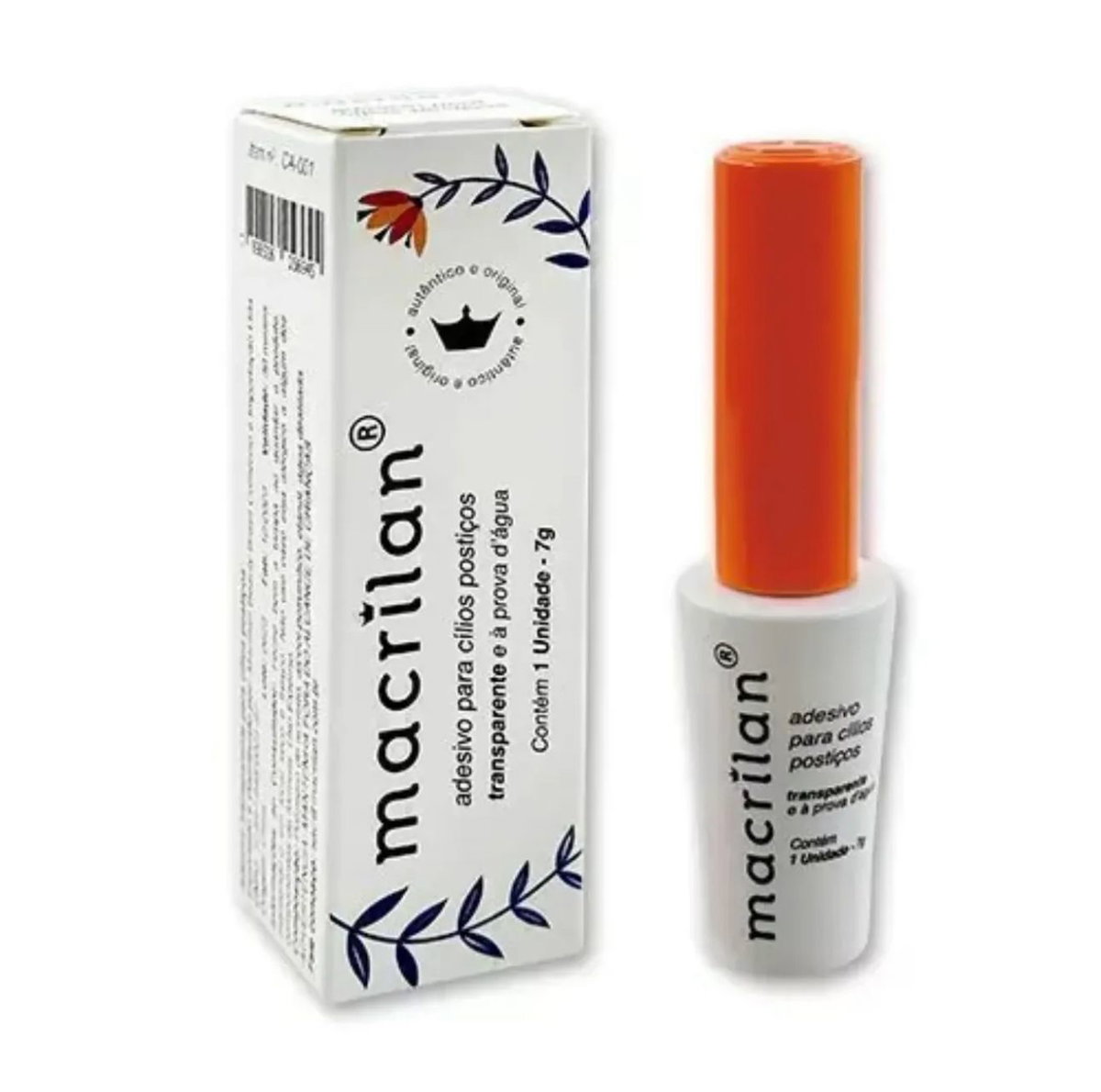 Pegamento de pestañas Macrilan resistente al agua y de secado rapido. Viene con un practico aplicador tipo brocha, para una aplicacion precisa.
